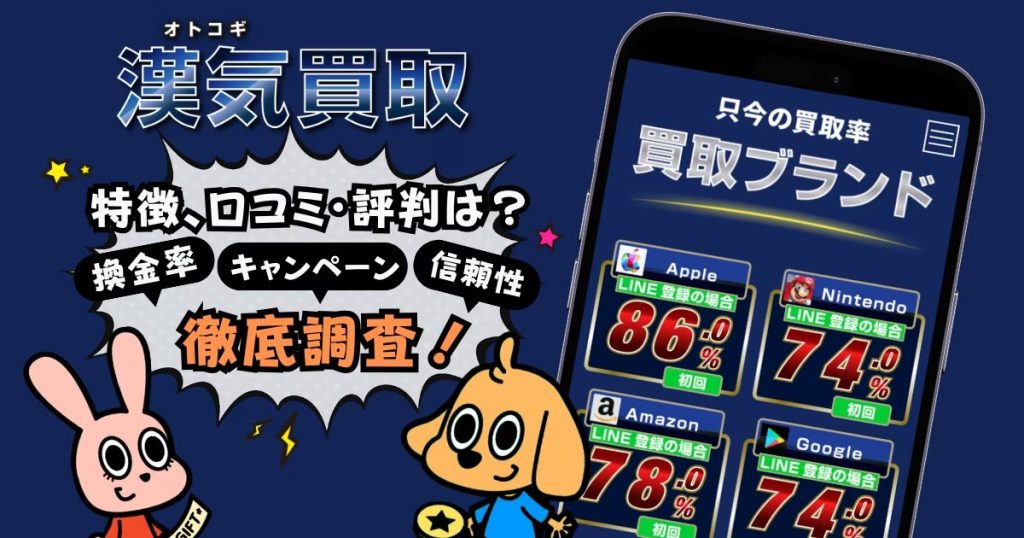 漢気買取は、電子ギフト券を高く・早く・安全に売りたい方に注目されている業者です。 Amazonギフト券やAppleギフトカードなど20種類以上の銘柄を取り扱い、業界最高水準の換金率と、最短30分の即日振り込みを両立しています。 運営元は業界最大手「お魚通... -
