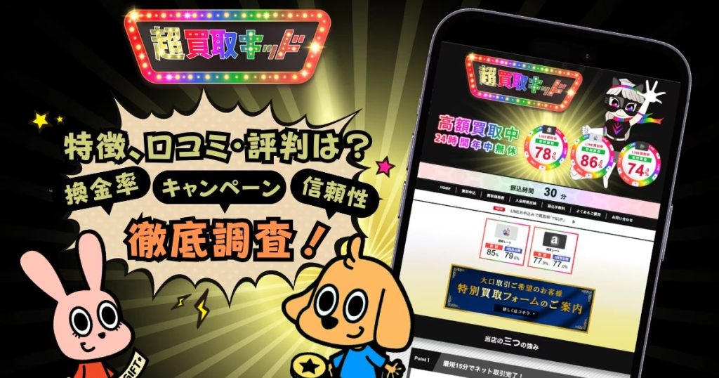 ギフト券を現金化したいと考えている方にとって、「どこで売るか」は重要な判断ポイントです。 特に、安心して利用できる信頼性と、すぐに現金化できるスピード感は、多くの人が重視する点でしょう。 オンラインで24時間対応している「超買取キッド」は、... -